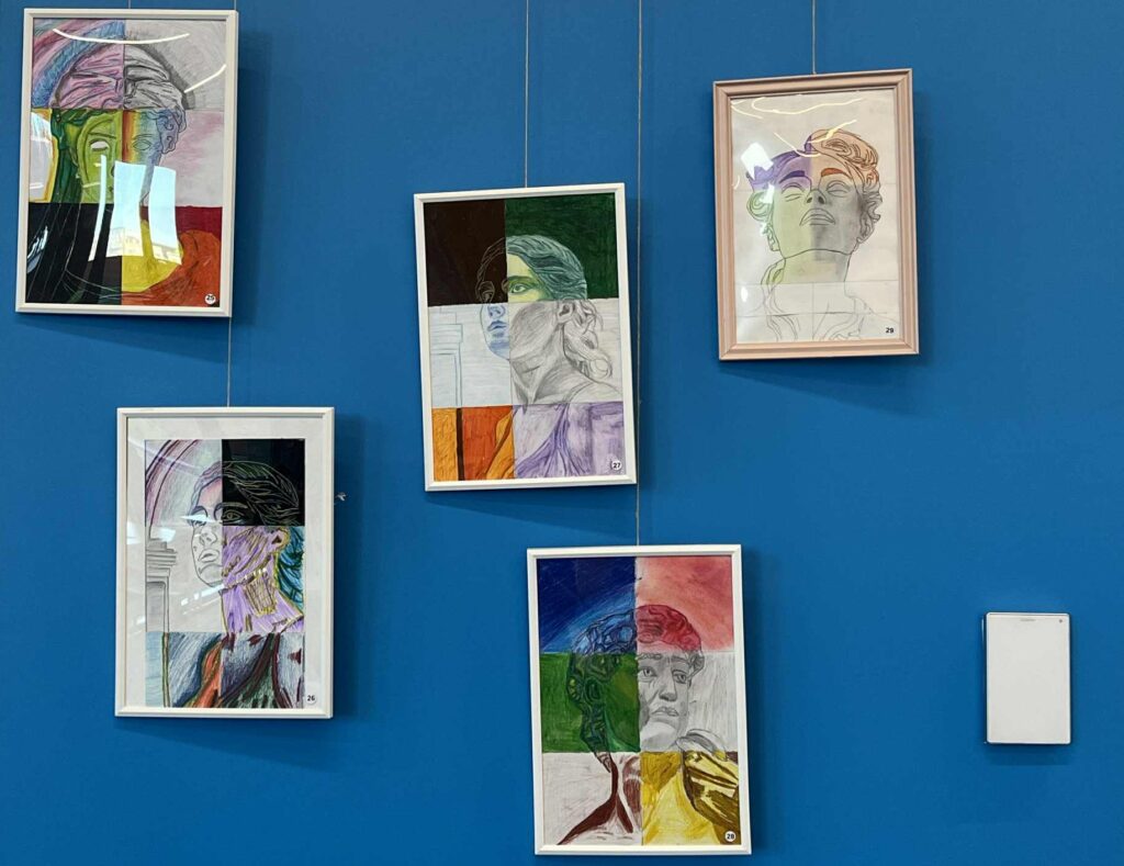 A mostra reúne retratos explorados através da técnica do pontilhismo e obras de reinterpretação de estátuas, evidenciando diferentes níveis de aprendizagem e expressão artística.